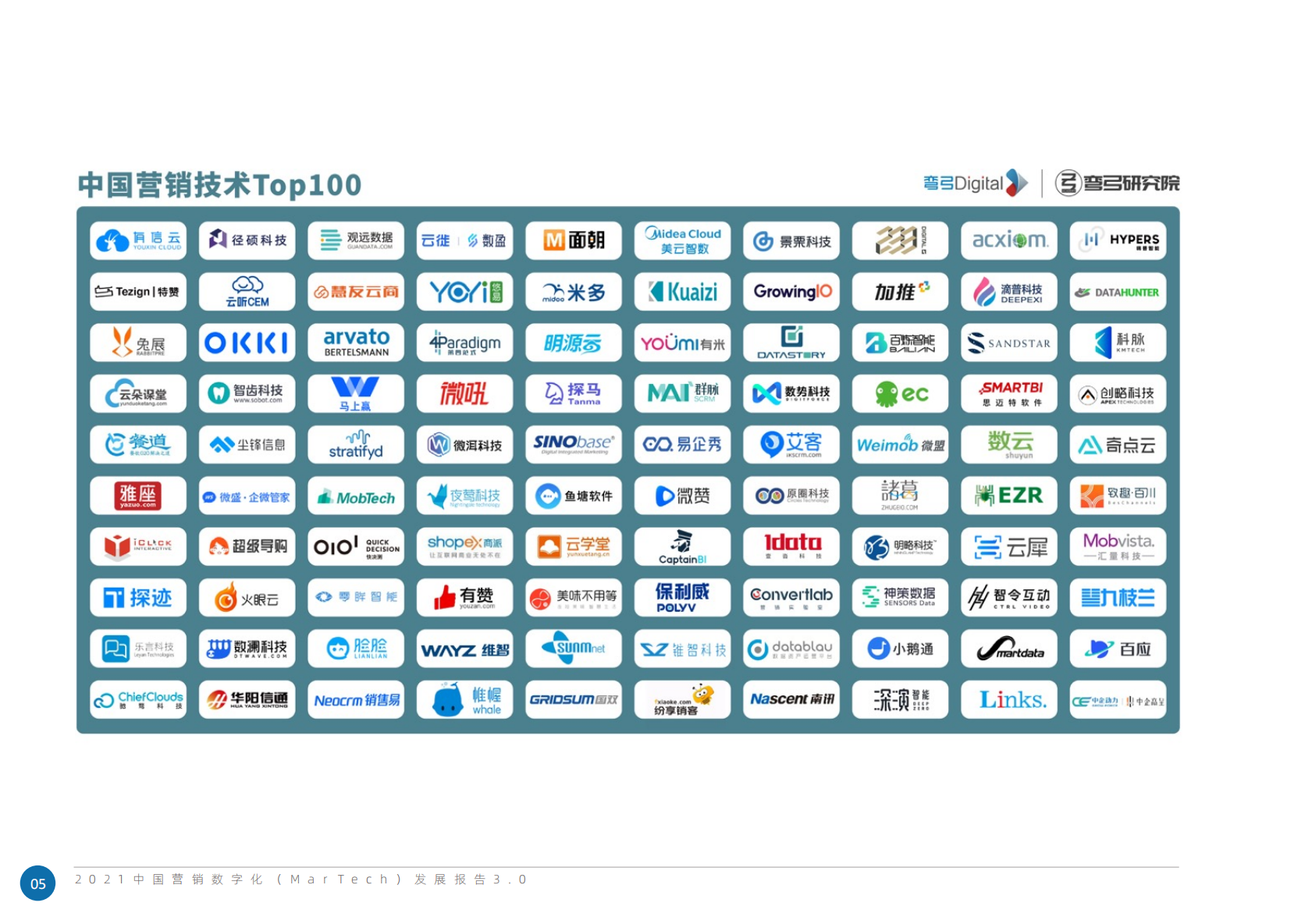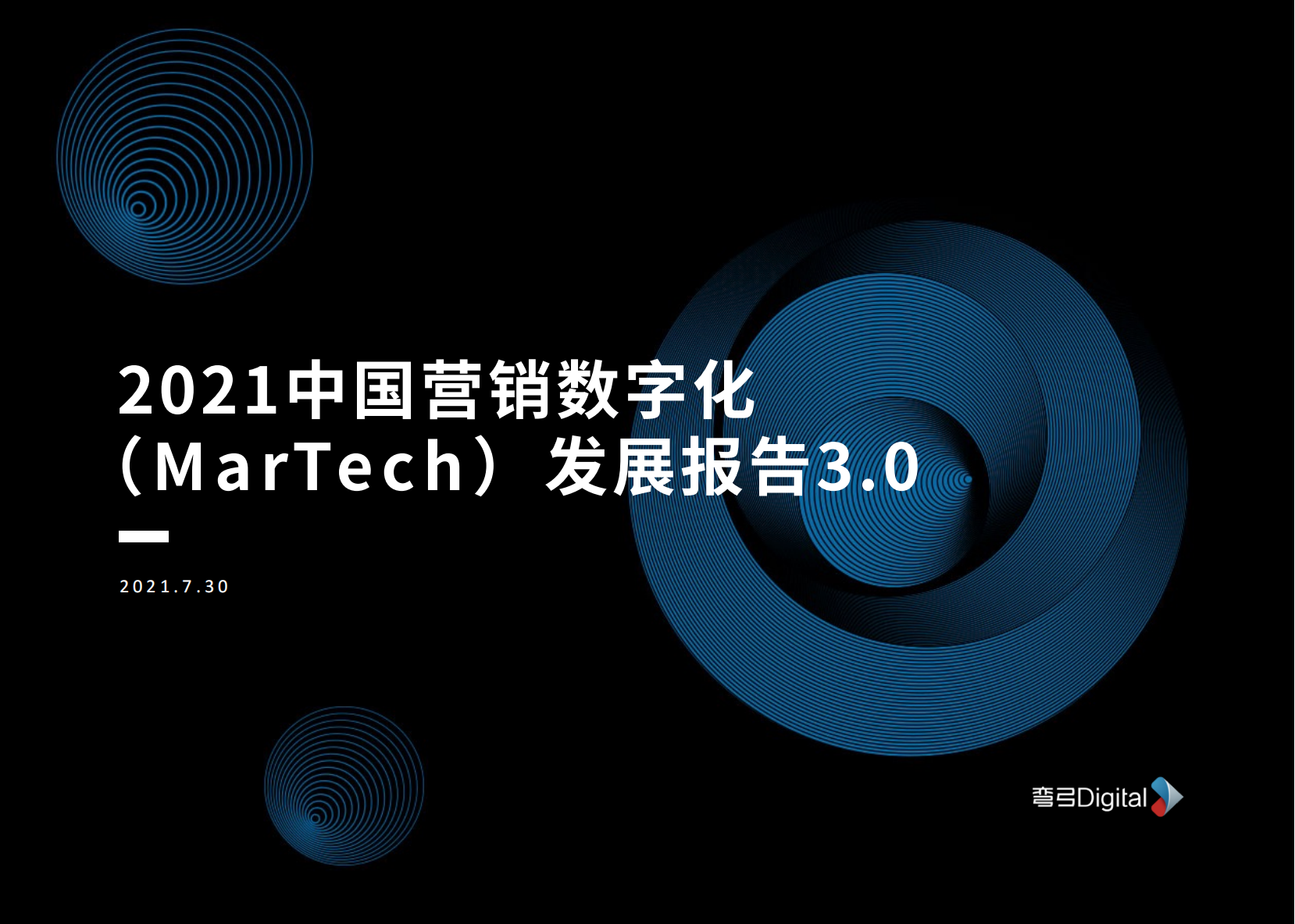 《2021中国营销数字化MarTech开展报告3.0》,由弯弓 Digital、私域流量观察、烯牛数据联合出品,是对《中国营销技术生态图谱6.0》(以下简称“图谱”)收录的2000+MarTech服务商的投融资数据、经营数据进行分析,并综合评估数字技术对未来商业环境的影响。