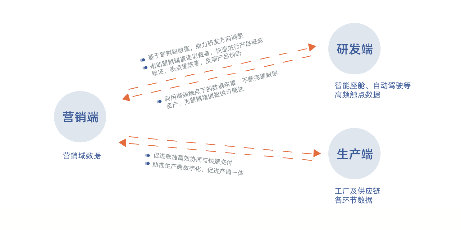 营销数字化的核心是数据,基于数据,营销端的数字化能够助推车企研发端和生产端的数字化加速,实现全面升级;同时,研发端和生产端的数据也能在营销端提升汽车产品附加值,从而实现正向增长。
