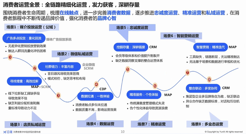 第一:消费者在线:围绕消费者旅程的营销体系设计,完善消费者触点。规划个性化营销场景的实施蓝图,在执行中逐步完善营销场景。